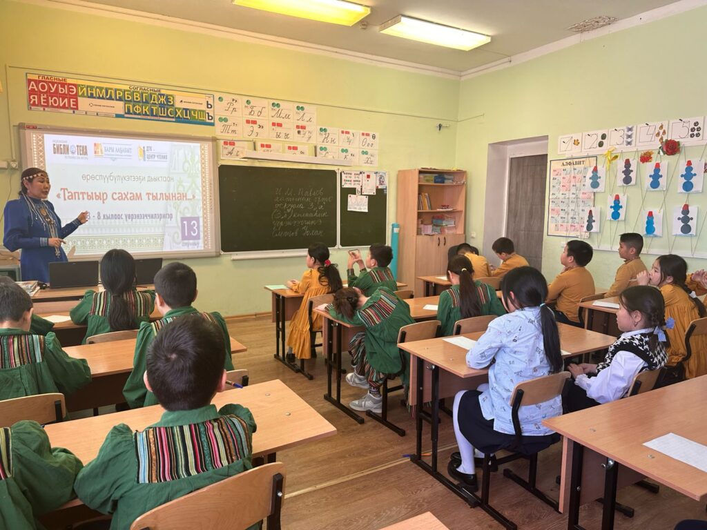 Олунньу 13 — 14 күннэригэр, Саха Өрөспүүбүлүкэтин Национальнай бибилэтиэкэтэ, «Оҕо арыллар, ааҕар киинэ» бэһис төгүлүн ыытар төрөөбүт төрүт тыл уонна сурук-бичик күнүгэр аналлаах «Таптыыр сахам тылынан…» өрөспүүбүлүкэтээҕи акцияҕа, алын уонна орто сүһүөх оскуола оҕолорун кытыннардыбыт.